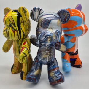 Le Bear Fluid Painting est simple, amusant et accessible à tous, cela consiste à verser de la peinture acrylique sur le support de votre choix. Atelier Kaiga met a votre disposition tout ce dont vous pouvez rêver pour rendre ce moment inoubliable, initialement limité aux ours (d’où l’appellation de Bear painting), nous avons aujourd’hui + de 50 objets de toutes tailles prêt à peindre, + de 40 peintures, des paillettes, des effets métallisés… Notre équipe est à votre disposition pour vous enseigner les techniques de coulage du bear fluid painting si vous le souhaitez.